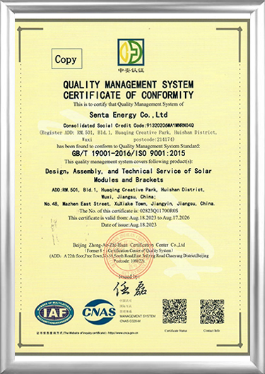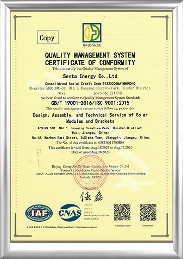 Senta Energy Co., Ltd. ก่อตั้งขึ้นในปี 2559 ซึ่งตั้งอยู่ในเมืองอู๋ซี มณฑลเจียงซู โดยเป็นบริษัทเทคโนโลยีขั้นสูงที่ดำเนินธุรกิจหลักในด้านการผลิตไฟฟ้าโซลาร์เซลล์พลังงานใหม่และธุรกิจจัดเก็บพลังงาน บ้านสำเร็จรูปในอาคารใหม่ และธุรกิจปลูกพืชเพื่อการเกษตรแบบใหม่ ด้วยการบูรณาการการวิจัยและพัฒนาอิสระ การผลิต การขาย และการบริการ เรามุ่งมั่นที่จะมอบโซลูชั่นโดยรวมสำหรับพลังงานอัจฉริยะตลอดวงจรชีวิต อาคารอัจฉริยะ และการปลูกพืชอัจฉริยะ