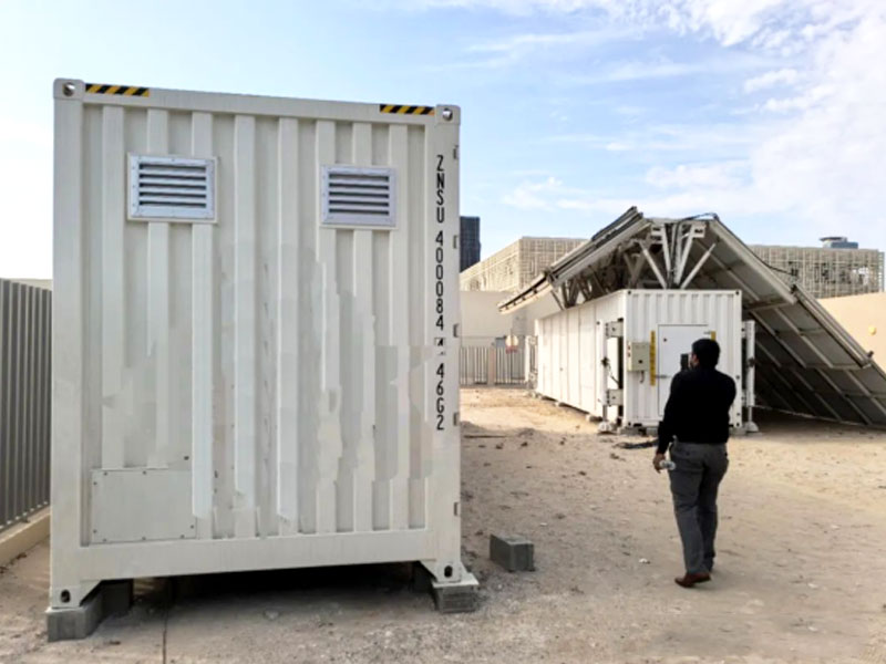 คอนเทนเนอร์เซลล์แสงอาทิตย์แบบพับได้ประกอบด้วยโมดูลกระจกสองชั้นสองด้าน ซึ่งสามารถผลิตไฟฟ้าได้ทั้งสองด้าน ซึ่งช่วยเพิ่มประสิทธิภาพการผลิตไฟฟ้าได้อย่างมาก ในเวลาเดียวกัน ระบบกักเก็บพลังงานยังสามารถแปลงพลังงานแสงอาทิตย์เป็นพลังงานไฟฟ้าและจัดเก็บไว้ได้ ทำให้มั่นใจได้ถึงความเสถียรและความน่าเชื่อถือของแหล่งจ่ายไฟ